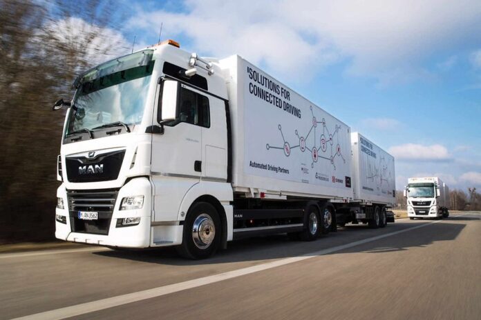 „Platooning”, czyli zintegrowane konwoje, to system w którym co najmniej dwa pojazdy ciężarowe poruszają się po drogach w konwoju, wspieranym przez techniczne systemy wspomagania jazdy i sterowania. Auta połączone ze sobą za pomocą elektronicznego „dyszla”, który wykorzystuje łączność między pojazdami. Ciężarówka z przodu ustawia prędkość i kierunek, a pozostałe podążają za nią.
