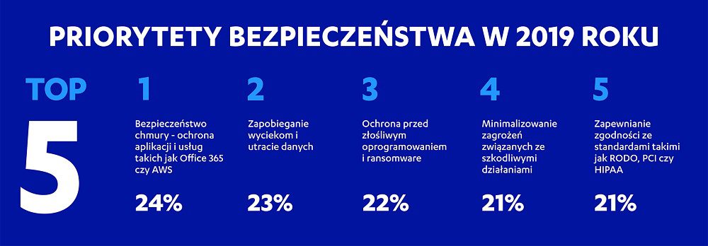 Firmy z branży finansowej zazwyczaj dbają o aktualność swoich zabezpieczeń. Wśród priorytetów wskazują bezpieczeństwo chmury i aplikacji (24%), zapobieganie wyciekom i utracie danych (23%), ochronę przed złośliwym oprogramowaniem i ransomware (22%) czy zapobieganie lub minimalizowanie zagrożeń związanych ze szkodliwymi działaniami pracowników (21%).