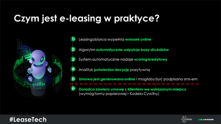 Cofidis: Francuska grupa wchodzi na polski rynek z ofertą leasingu online. Technologię do obsługi klienta dostarczy polski start up Carsmile. Wspólne przedsięwzięcie obu firm wypełni lukę technologiczną w leasingu i otworzy nowy segment rynku finansowego w Polsce – LeaseTech. Źródło: spółka