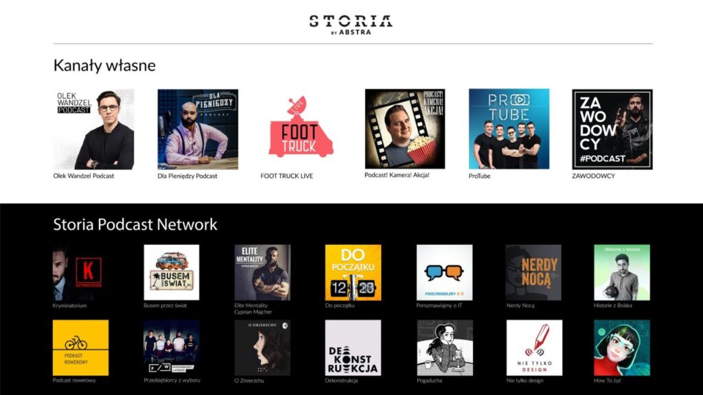 Abstra: Producent treści wideo na YouTube w Polsce rozpoczął ekspansję na rynek audio, tworząc Storia by Abstra. To pierwszy tego typu podmiot w Polsce, łączący kompetencje w dziedzinie tworzenia treści video z realizacją podcastów. W ramach Storia by Abstra powstanie portfolio dedykowanych podcastów video, a także kierowana do partnerów komercyjnych usługa „podcast as a service” oraz platforma do współpracy dla twórców Storia Podcast Network. Źródło: spółka
