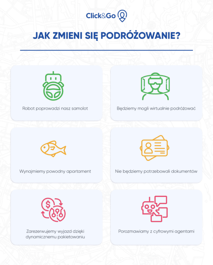 Postępy technologiczne zapewniają nam coraz bardziej innowacyjne narzędzia do zarządzania i planowania podróży. Już dziś mamy już możliwość rezerwowania wszystkich składowych wyjazdu takich jak przelot, hotel, transfer z hotelu czy ubezpieczenie w jednym miejscu dobierając każdy z tych komponentów dokładnie pod siebie.
