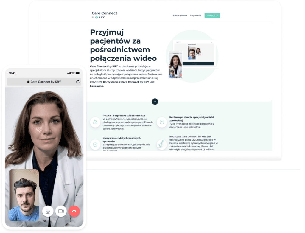KRY: Dostawca cyfrowej opieki zdrowotnej w Europie, uruchomił Care Connect by KRY, bezpłatną i bezpieczną platformę internetową dla lekarzy i specjalistów w zakresie opieki zdrowotnej, umożliwiającą przeprowadzanie wizyt na odległość za pomocą połączeń wideo. Platforma Care Connect by KRY została stworzona, aby zaspokoić rosnące zapotrzebowanie zdalnego dostępu do porad i wskazówek dotyczących zdrowia pośród pacjentów, którzy w związku z epidemią COVID-19 pozostają w domach. Ma to pomóc w zahamowaniu rozprzestrzeniania się epidemii oraz zwiększyć dostępność lekarzy oraz specjalistów w zakresie opieki zdrowotnej. Platforma Care Connect by KRY jest dostępna dla każdego lekarza oraz specjalisty opieki zdrowotnej w całej Europie, a do prowadzenia konsultacji wideo nie trzeba posiadać konta w aplikacji KRY. Źródło: spółka