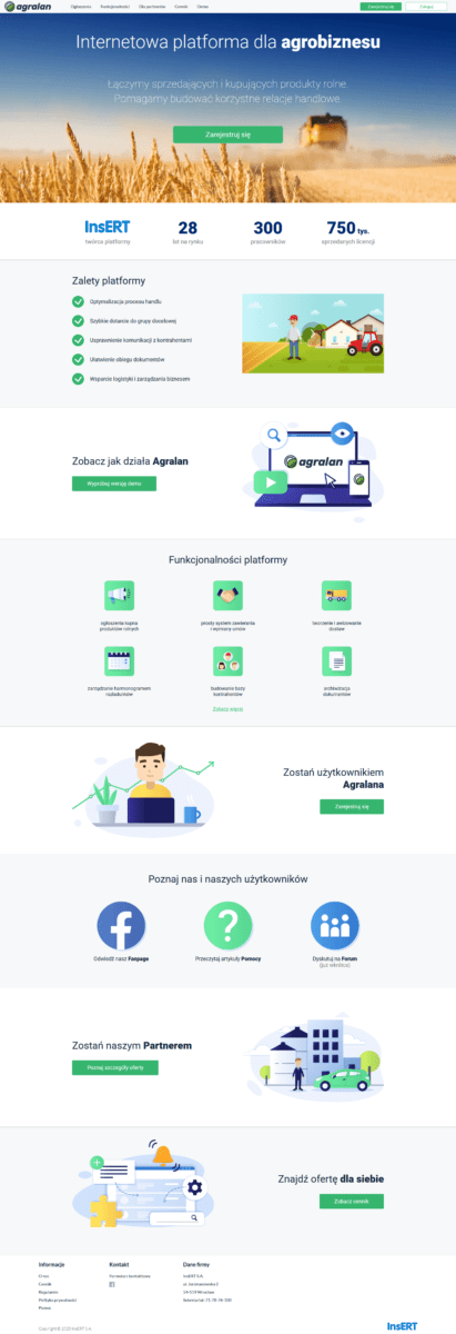 Dzięki nowej internetowej platformie Agralan dostawcy i kupujący produkty rolne otrzymują niedostępne dotąd narzędzia do handlu na rynku rolnym w wersji online, także w bezpłatnym pakiecie. Twórcą platformy jest InsERT – lider rynku oprogramowania dla małych i średnich firm.
