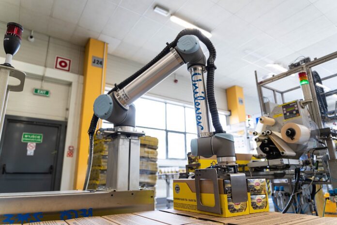 W katowickiej fabryce Unilever zapakowane przez pracowników do kartonów pudełka z gotową do sprzedaży herbatą są układane na paletach przez 6 robotów współpracujących UR10. Wykorzystanie cobotów skróciło czas paletyzacji, zoptymalizowało ergonomię pracy i odciążyło pracowników od najbardziej żmudnych zadań.