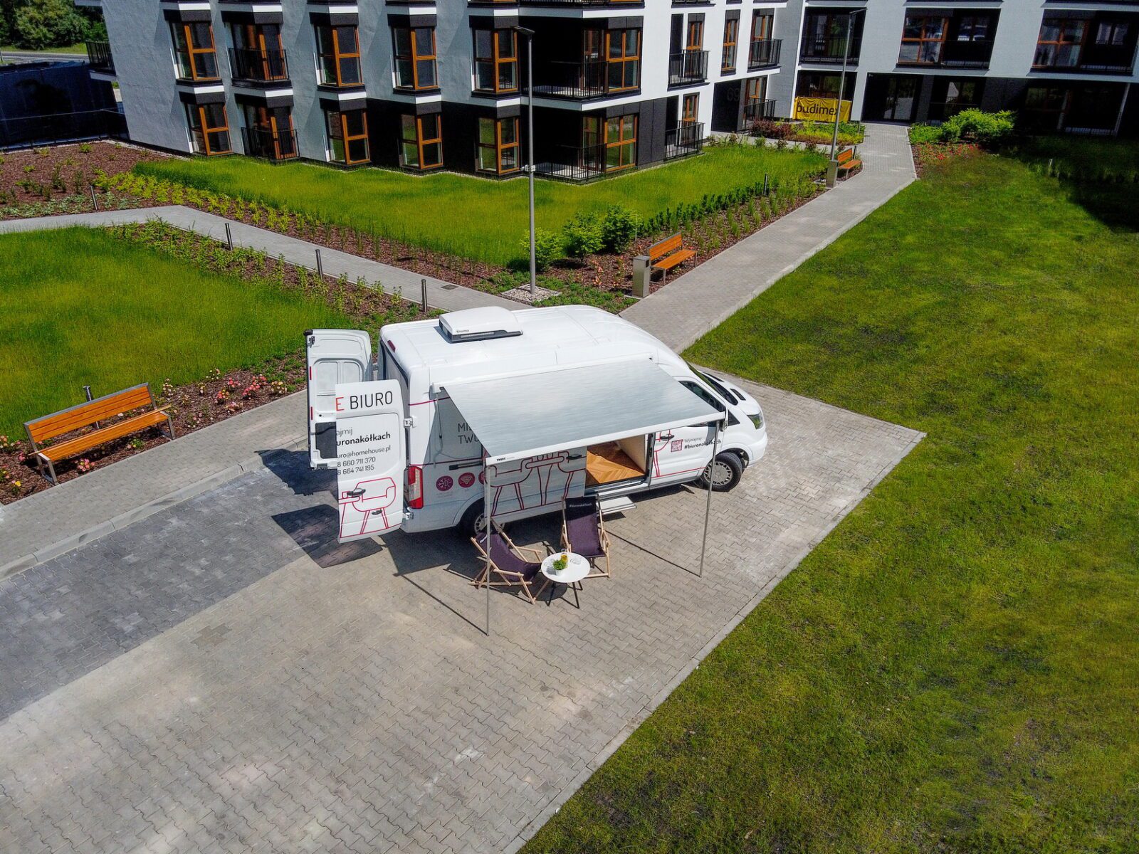 Chcemy, aby klient zapomniał, że pracuje „w terenie”. Może to być rozwiązanie na przykład dla firm deweloperskich, które nie posiadają stacjonarnego biura sprzedaży na terenie inwestycji (lub chcą zorganizować dzień otwarty), ale widzę też możliwe zainteresowanie ze strony agencji nieruchomości, banków, towarzystw ubezpieczeniowych, czy firm doradczych. Wierzę, że może być to również atrakcyjna opcja dla firm, które szukają niestandardowej formy reklamy i nowego sposobu na dotarcie do klientów – mówi Piotr Steć.