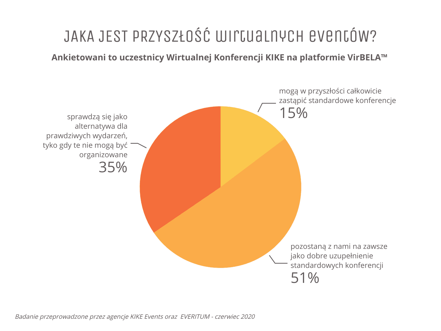 Z najnowszego badania przeprowadzonego przez EVERITUM oraz KIKE Events wynika, że aż 87 proc. polskich firm chce mieć możliwość uczestniczenia w wydarzeniach online i ich organizowania. Ponad 53 proc. ankietowanych deklaruje, że w przyszłości planuje organizować lub brać udział w wirtualnych wydarzeniach zamiast lub równolegle ze spotkaniami w „realu”.