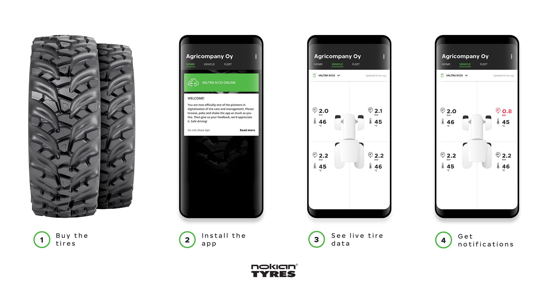 W obecnej fazie system Nokian Tyres Intuitu obejmuje inteligentne opony z czujnikami oraz aplikację do urządzeń mobilnych. Aby rozpocząć korzystanie z niego, wystarczy zamówić inteligentne opony i pobrać aplikację. Inteligentne opony rejestruje się w aplikacji, która pokazuje ich położenie, ciśnienie i temperaturę w każdym wyposażonym w nie pojeździe.