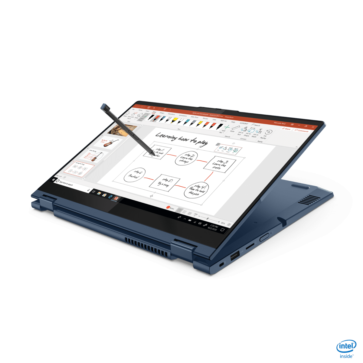 - Wydajność procesorów Intel Core 11. generacji oraz elastyczność formatu Yoga umożliwiają płynne przechodzenie między trybami, a tym samym efektywniejszą pracę. Porty Thunderbolt 4 i USB-C ułatwiają łączność między ultraszybkimi urządzeniami peryferyjnymi i monitorami.