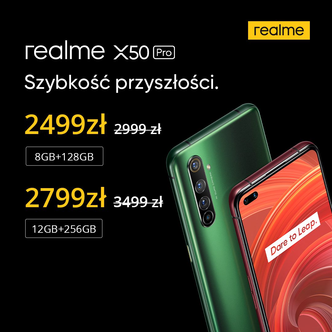 - realme X50 Pro 5G (8+128 GB) – cena promocyjna 2499 zł (regularna cena 2999 zł)