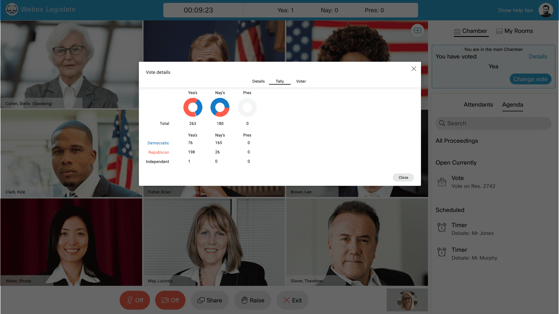 - moderatorom, którzy dzięki możliwości pełnej personalizacji Webex Legislate mogą ustalać zasady i procedury oraz przydzielać role poszczególnym organom. Oznacza to nadanie odpowiednich uprawnień przewodniczącym komisji, mówcom, legislatorom, pracownikom, obywatelom czy przedstawicielom prasy. Rozwiązanie zapewnia również dostęp do liczników czasu, szczegółową kontrolę wyciszenia uczestników rozmów i łatwiejsze zarządzanie porządkiem obrad.