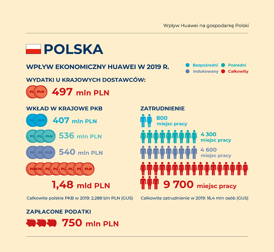 Jak wynika z tegorocznej edycji raportu The Economic Impact of Huawei in Poland, polska gospodarka otrzymała od Huawei potężny impuls do rozwoju w 2019 roku. Poza wpływem na wzrost gospodarczy i tworzeniem nowych miejsc pracy, firma wygenerowała 750 mln zł wpływów do budżetu, wynikających z podatku dochodowego płaconego zarówno przez samą firmę, jak i jej pracowników oraz dostawców. To najlepszy wynik spośród wszystkich firm z branży ICT w Polsce.
