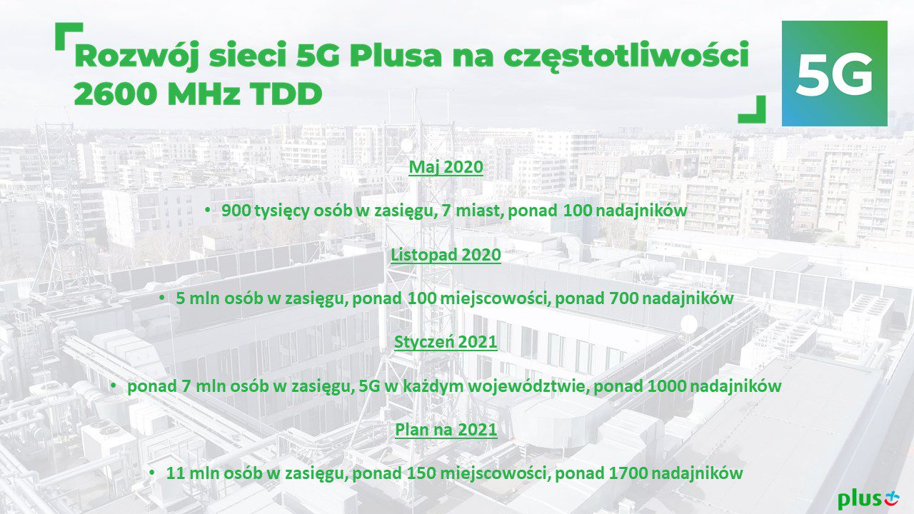 Rozwój sieci 5G w Plusie – 11 mln osób i ponad 150 miejscowości w zasięgu 5G 2600 MHz TDD w 2021 roku