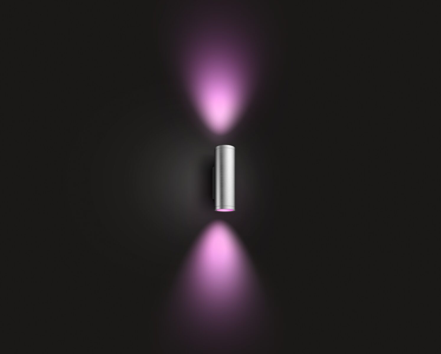 Philips Hue Appear to ciesząca się ogromną popularnością, łatwa w montażu, zewnętrzna lampa ścienna w kolorze inox, z wykończeniem ze szczotkowanej stali nierdzewnej. Została tak zaprojektowana, aby stworzyć efekt mocnego, oddzielonego od lampy światła, w kolorze białym lub milionie innych kolorów, skierowanego do góry i do dołu, nadającego zewnętrznej przestrzeni luksusowego charakteru. Podczas montażu lampy Appear nie trzeba instalować dodatkowych przewodów – można ją łatwo powiesić na ścianie za pomocą złącza wtykowego i po prostu zrelaksować się.