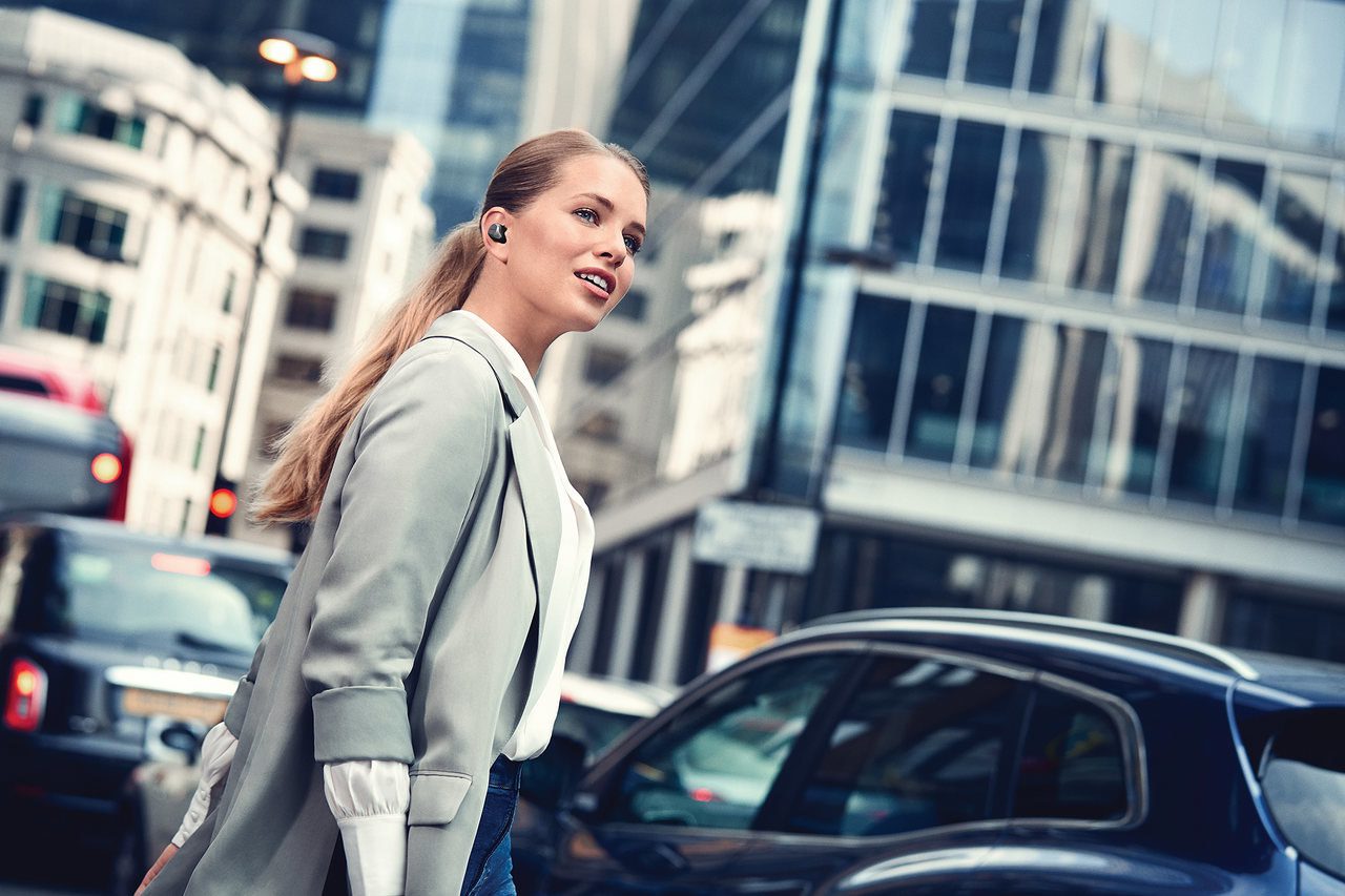 Dzięki tej funkcji Jabra zapewnia użytkownikom słuchawek Elite 85t optymalne dopasowanie, a tym samym lepsze wrażenia ze słuchania dźwięku, skuteczniejszą aktywną redukcję hałasu (ANC) i głębsze basy.