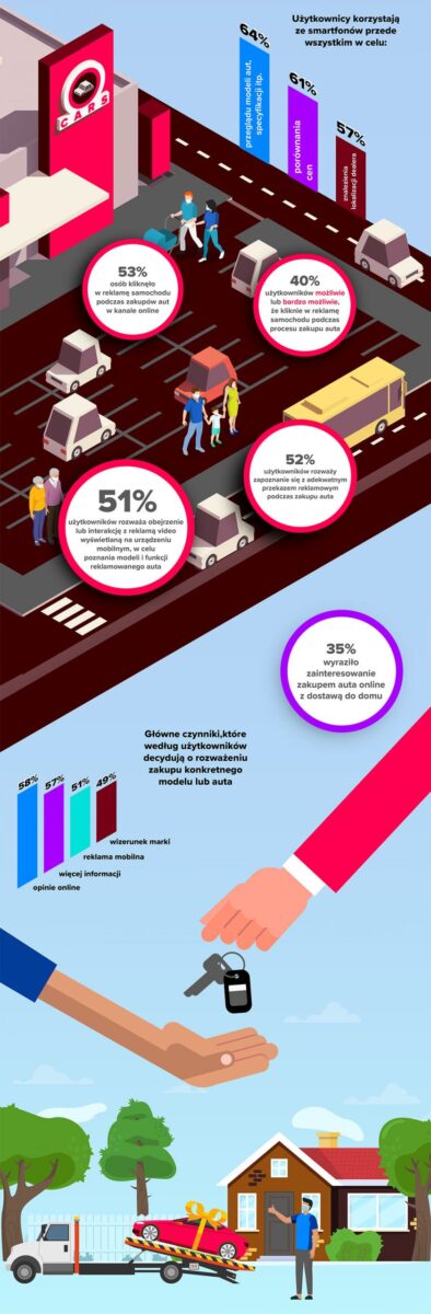 „Okazuje się, że zakup samochodu osobowego w br. planuje 46 proc. zapytanych o to Polaków. Zaskakujące? Nie, ale co czwarty z nich chce taką transakcję zawrzeć wyłącznie przy pomocy narzędzi online, nie zaś osobiście, odwiedzając salon motoryzacyjny czy spotykając się z pośrednikiem i to jest prognostyk warty uwagi. Dla branży motoryzacyjnej to istotne dane, ponieważ pokazują zupełnie nowe zachowania konsumenckie. To szansa, by odczytać potrzeby i oczekiwania potencjalnych nabywców oraz odszukać ich w Internecie między innymi w mediach społecznościowych, serwisach tematycznych oraz poprzez reklamę w mobile gamingu” – Michał Pietruszka, Head of Mobile Product, Mobiem Polska