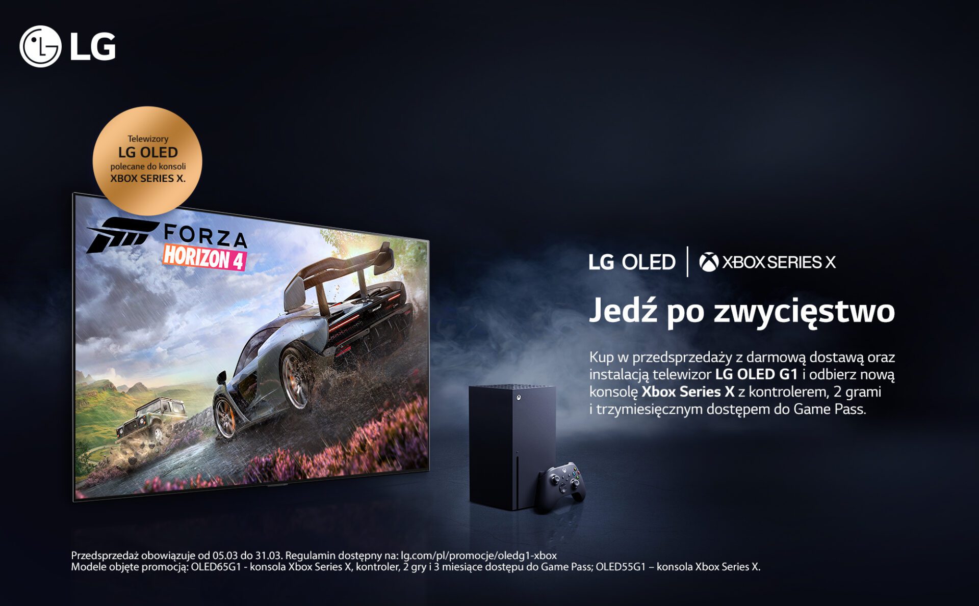 Dla wszystkich klientów, którzy cenią najwyższą jakość obrazu oraz wyjątkowy design LG przygotowało promocję na modele z serii G1 Gallery Design. Decydując się na zakup modelu LG OLED G1 55” klienci będą mogli otrzymać konsolę Xbox Series X. Kupując LG OLED G1 w wersji 65-calowej otrzymają konsolę Xbox Series X oraz dwie gry i trzy miesiące dostępu do oferty Game Pass.