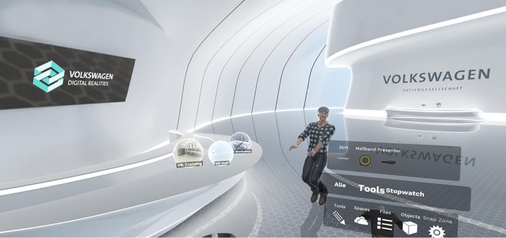 Volkswagen wdrożył VR na bardzo wiele różnych sposobów poprzez platformę Volkswagen Digital Hub Group. Jest to wirtualne centrum, które skupia wszystkie aplikacje VR funkcjonujące w całej grupie VW. Eksperci z grupy Volkswagen opracowali aplikacje rzeczywistości wirtualnej do produkcji i logistyki, które umożliwiają wielu uczestnikom spotkania i pracę w jednym, wspólnym pokoju VR.