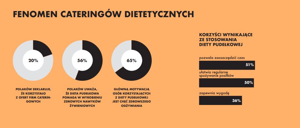 Według raportu „Rosnące znaczenie zdrowia a nawyki żywieniowe Polaków. SuperMenu 2021” 55% Polaków deklaruje, że powodem chęci skorzystania z diety pudełkowej jest zdrowsze odżywianie. To jednocześnie główna motywacja zakupowa tych, którzy korzystają już z tego typu usług. Uważa tak aż 65% z nich. Trend ten wyparł więc chęć utraty wagi, która jeszcze niedawno była głównym czynnikiem wyboru tego sposobu odżywiania.