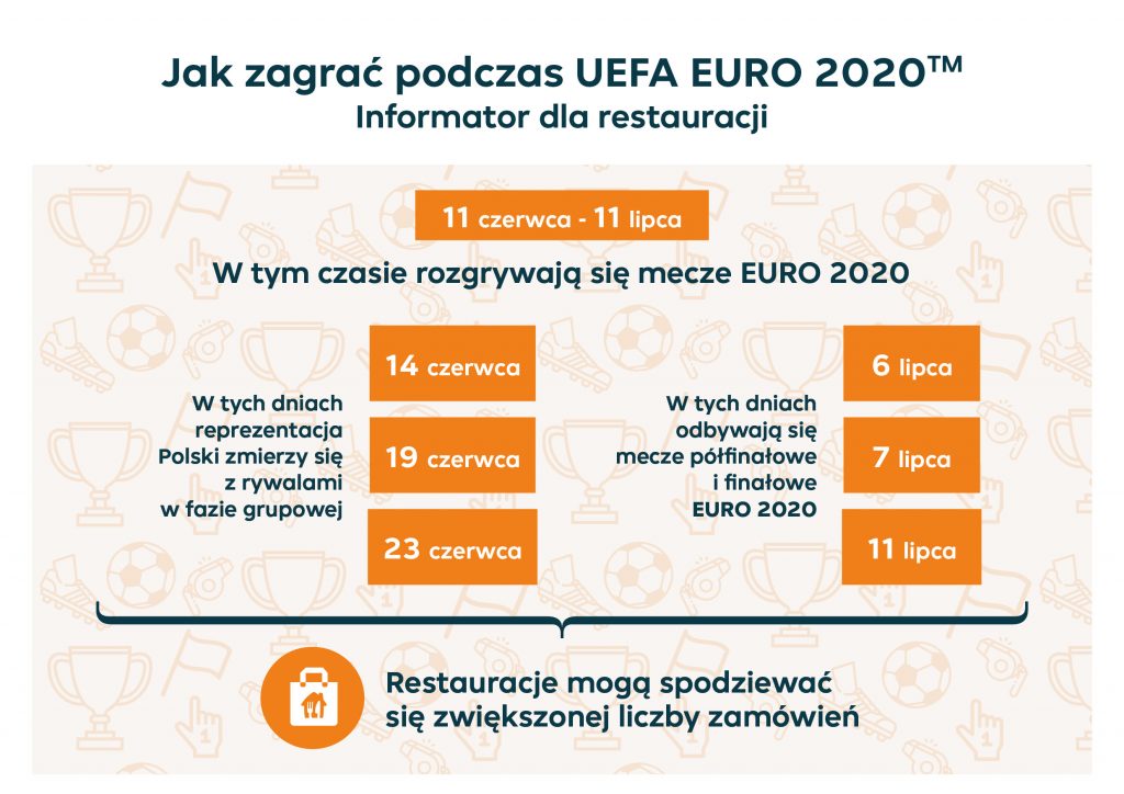 Mecze Polski ze Słowacją oraz z Hiszpanią pokazały, że Polacy chętnie oglądają spotkania w domu, zamawiając jedzenie na wynos. Zbliżający się mecz ze Szwecją (23 czerwca, 18:00, Sankt-Petersburg), a także półfinały (6 i 7 lipca) oraz finał (11 lipca), to chwile, w których restauracje w szczególny sposób mogą zjednać sobie kibiców.