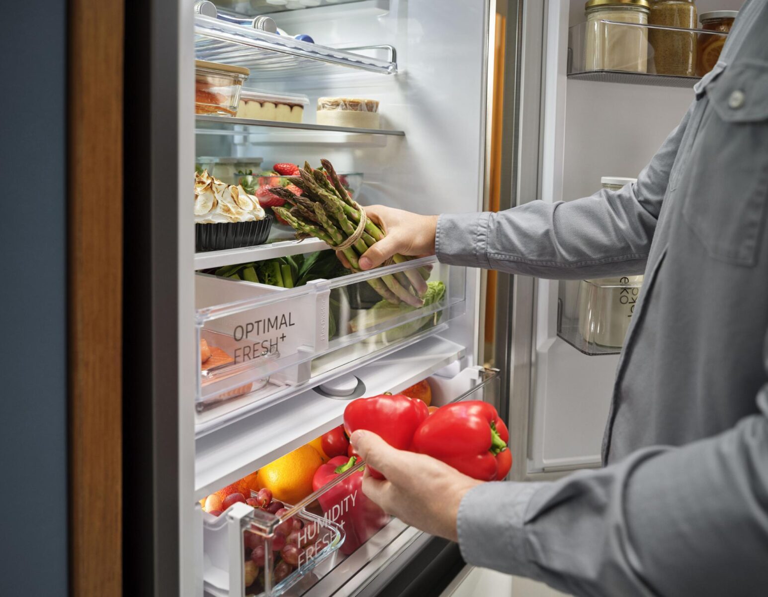 Dzięki temu rozwiązaniu będziemy mieć pewność, że każdy produkt jest przechowywany w odpowiednich warunkach i pozostaje świeży nawet dwa razy dłużej. Dużą rolę w utrzymaniu świeżości produktów odgrywa także odpowiednia wilgotność. W tym wypadku z pomocą przychodzi szuflada Humidity Fresh+, która zapewnia specjalne warunki o wysokim poziomie wilgotności, aby warzywa i owoce zachowały swój doskonały wygląd i smak.