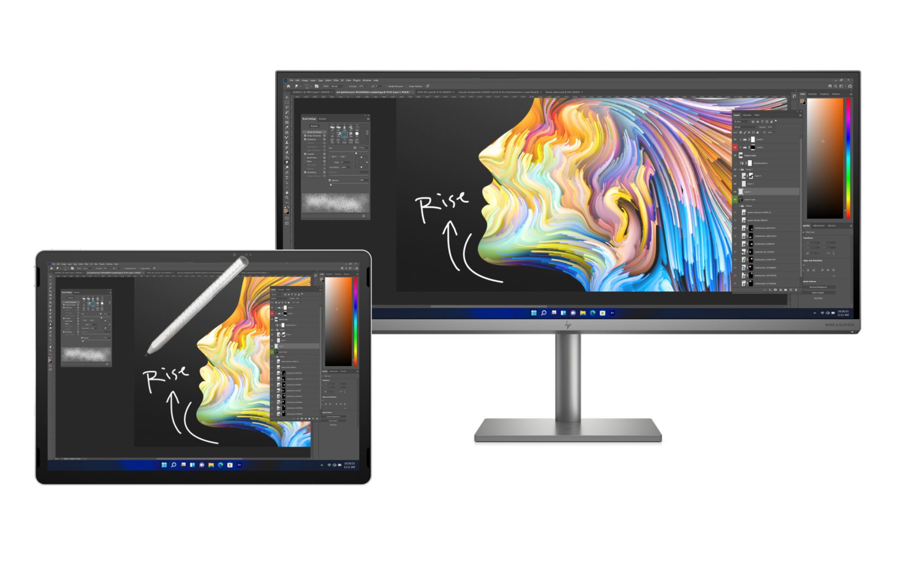 • Duet for HP: pozwala podłączyć drugie urządzenie (laptop, tablet lub AiO), aby rozszerzyć przestrzeń roboczą. Warto użyć drugiego urządzenia jako ekranu wejściowego do edycji za pomocą pióra, powiększania lub pomniejszania za pomocą dotyku, aby zapewnić łatwiejszą edycję.i