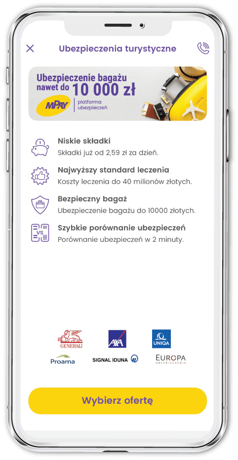 W ramach wielofunkcyjnego narzędzia do płatności mobilnych, po ubezpieczeniach komunikacyjnych (OC, AC, Assistance, NNW), mPay zapewnił swoim użytkownikom również dostęp do szerokiej oferty ubezpieczeń turystycznych. W jednym miejscu porównamy wiele propozycji, a wybraną opcję opłacimy bez potrzeby wychodzenia z aplikacji.