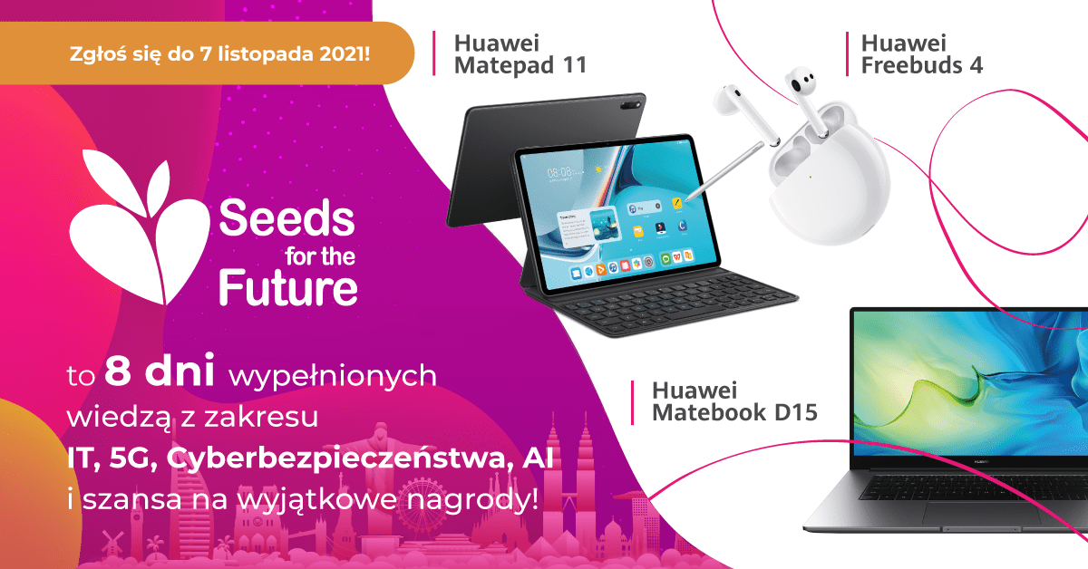 Startuje ósma polska edycja programu Huawei Seeds For The Future, skierowanego do najzdolniejszych studentek i studentów. Globalnie biorą w nim udział osoby z ponad 100 krajów na całym świecie. Laureaci i laureatki wezmą udział w bogatym cyklu szkoleń oraz warsztatów prowadzonych przez wybitnych ekspertów. Program gwarantuje bogate doświadczenia w ramach zajęć z technologii, przywództwa, doświadczeń kulturowych i komunikacji z rówieśnikami na całym świecie. Tegoroczna edycja odbędzie się w formule online, a aplikacje przyjmowane są do 7 listopada.