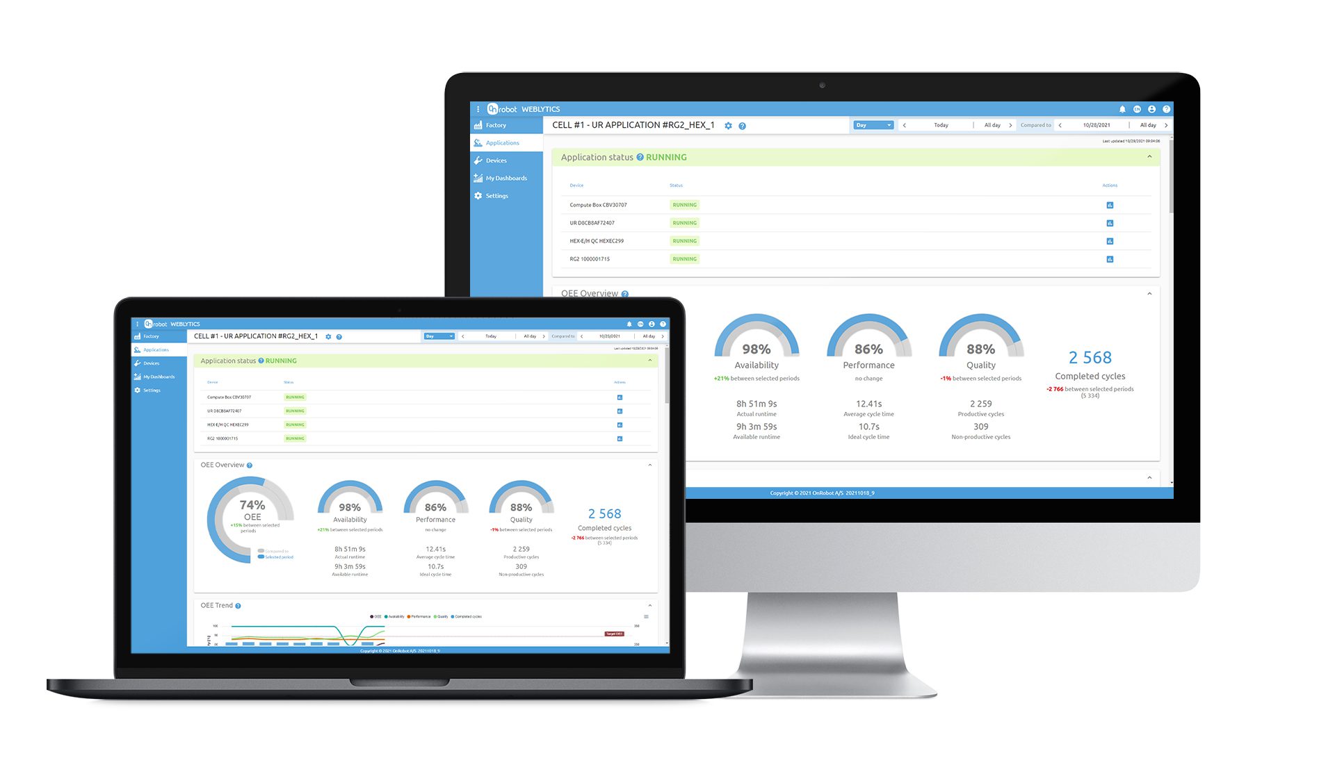 WebLytics umożliwia monitorowanie wydajności wielu aplikacji współpracujących jednocześnie i w czasie rzeczywistym. Oprogramowanie gromadzi dane zarówno z robotów, jak i narzędzi i przekształca je w łatwą do zrozumienia, zwizualizowaną na poziomie urządzenia i aplikacji, informację.