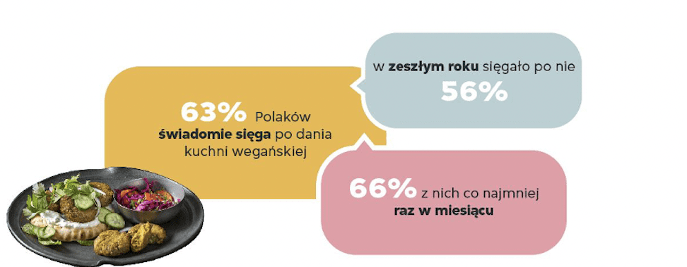 Deklarujemy, że sięgalibyśmy po tego typu jedzenie jeszcze częściej, gdyby było łatwiej dostępne. W sukurs może przyjść nam rosnąca roślinna oferta restauracji. Bywa ona szczególnie przydatna, gdy wpadną do nas znajomi weganie. Co trzecia osoba, która potrafi ugościć wegan, zamawia dla nich jedzenie z dostawą.