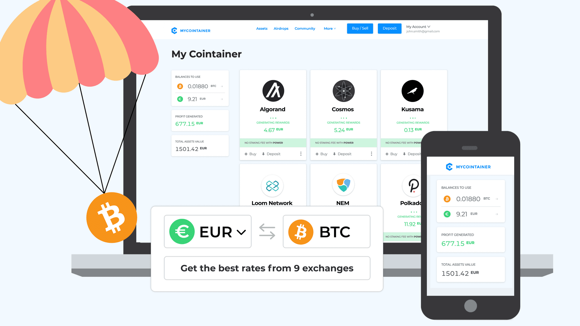 MyCointainer to startup, który umożliwia użytkownikom łatwy staking kryptowalut i tokenów. Platforma działa jak cyfrowa świnka skarbonka. Użytkownik kupuje lub przelewa do swojego portfela wybrane tokeny i generuje dzięki stakingowi dochód pasywny.