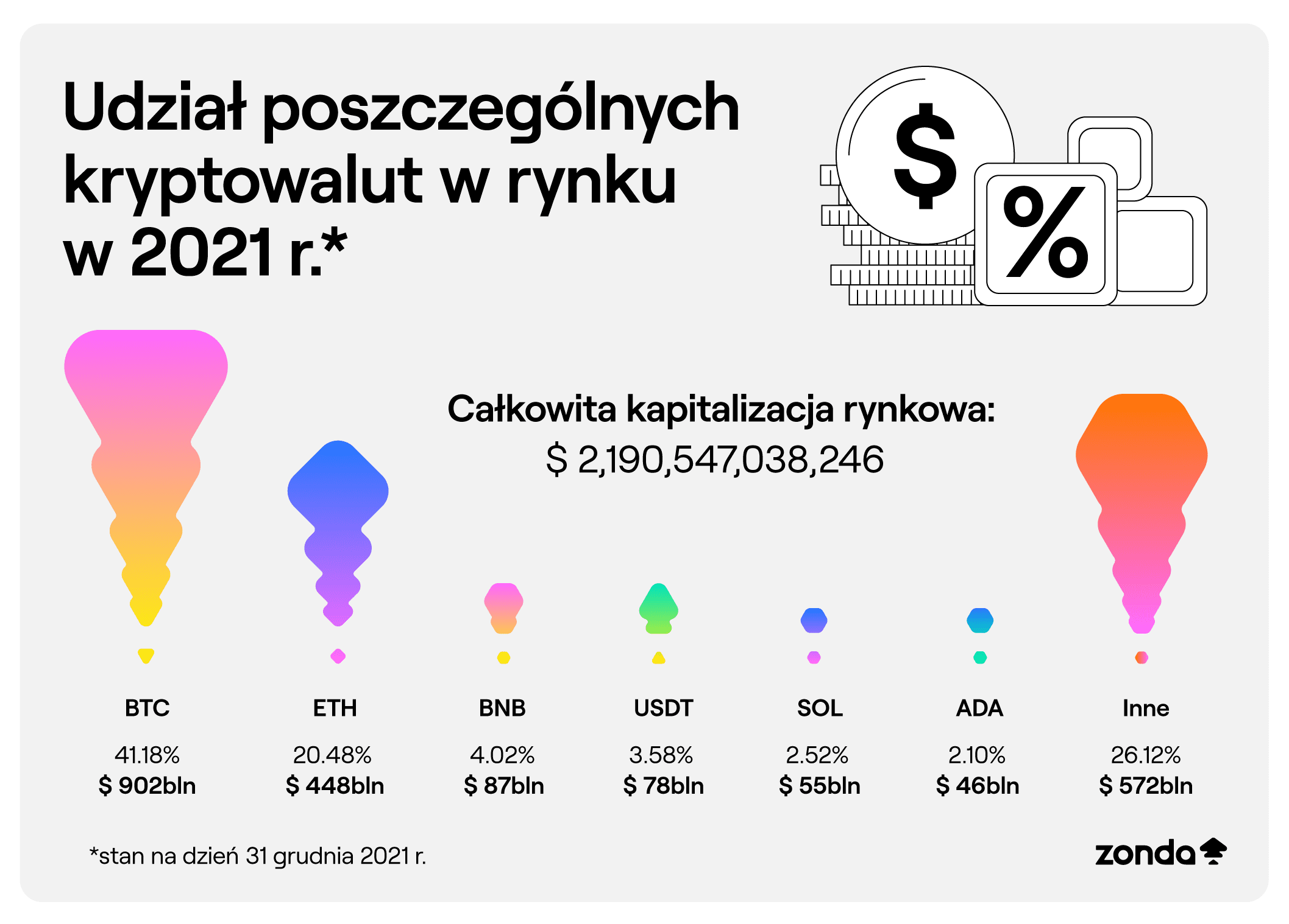 Inne najważniejsze branżowe trendy w ubiegłym roku według ekspertów Zondy dotyczyły m.in.: wejścia kryptowalut na giełdy tradycyjne, rozwoju inicjatyw opartych na blockchain, takich jak NFT, a także nowych regulacji na całym świecie, proponowanych, aby nadążyć za tempem rozwoju technologii w sektorze walut cyfrowych.