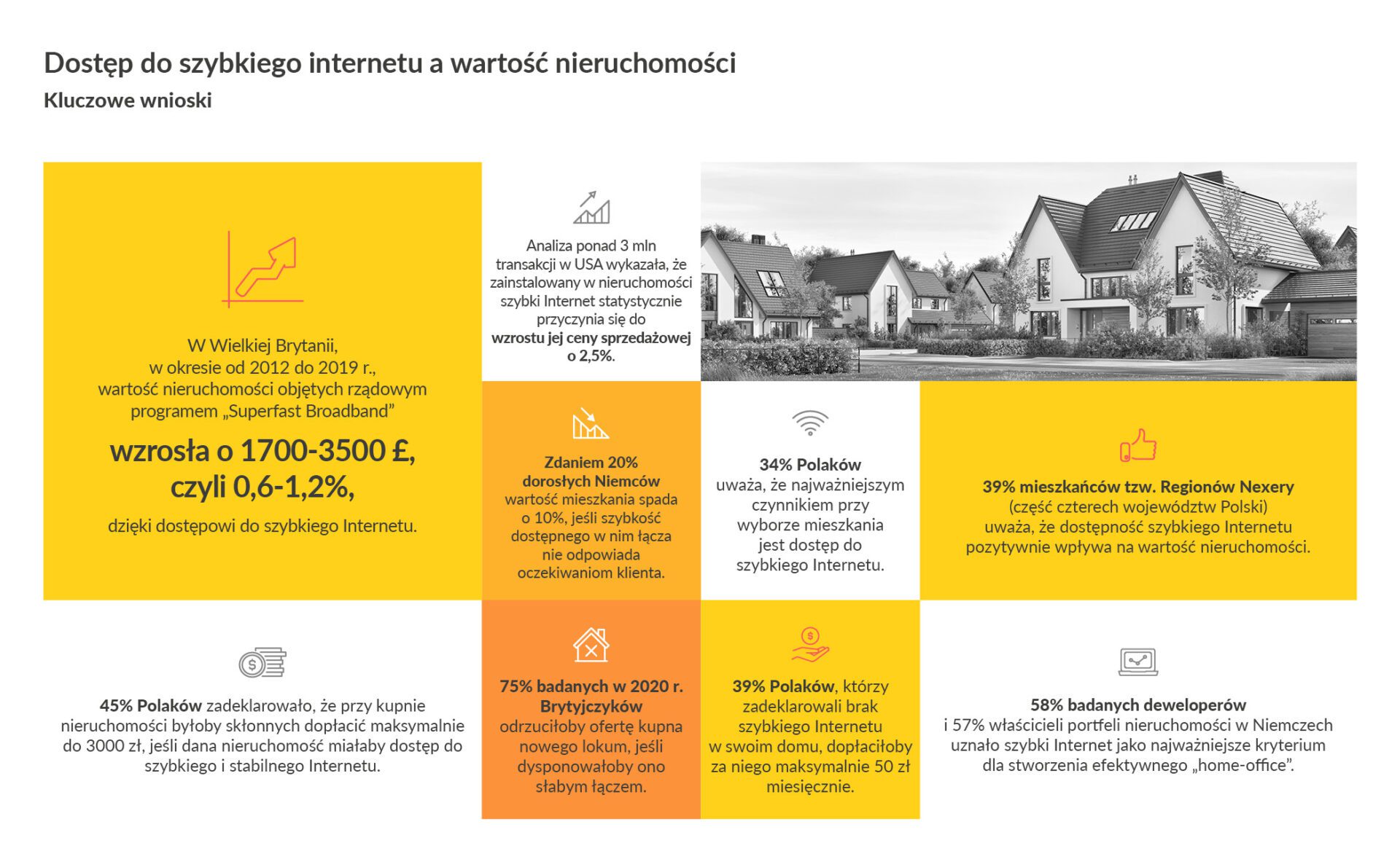 W opracowaniu przeanalizowano również rynkowe dane z kilku krajów europejskich oraz USA. Oprócz sytuacji na rynku nieruchomościowym, związanej z dostępnością szybkiego internetu, analiza ukazuje również ogólne trendy, wpływające na globalny rozwój szerokopasmowej infrastruktury.
