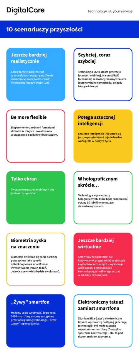 Jak zaznacza prof. Aleksandra Przegalińska – futurolog, badacz rozwoju nowych technologii – wszechobecność smartfonów w naszym życiu jest faktem, a proces ten będzie się tylko pogłębiał. W raporcie „10 lat mobilnej rewolucji” zebrane zostały trendy, które ukształtują branżę mobile w przyszłości. Zmiany te będą możliwe dzięki bardziej wydajnym procesorom, lepszym aparatom, a także zintegrowanym funkcjom. To już nie tylko znane dotąd IoT, czyli sterowanie innymi urządzeniami za pomocą smartfona czy rozmowa z botami, ale i sztuczna inteligencja (AI), biometria czy… elektroniczne tatuaże, będące źródłem informacji o, chociażby danych medycznych.