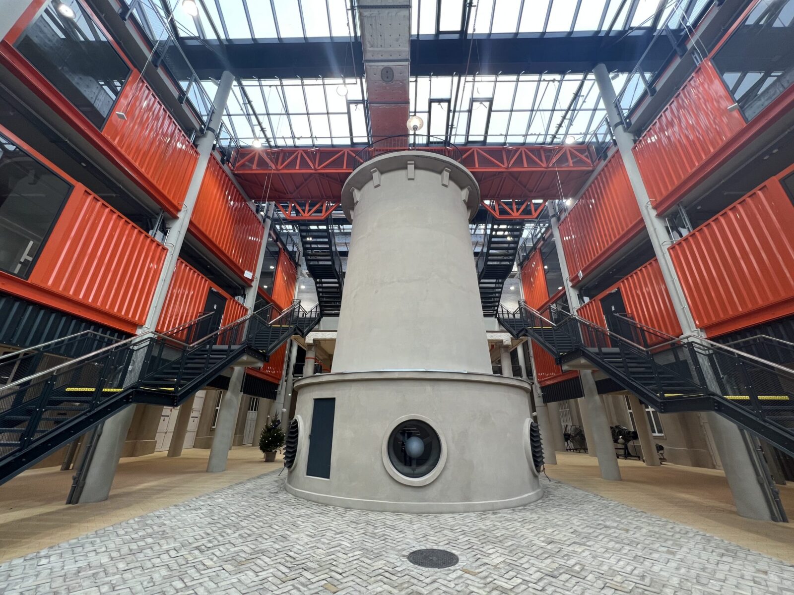 W środkowej części budynku zaplanowano nowe stropy, które połączą różne poziomy w północnej i południowej części skrzydła dodatkowo stwarzając możliwość eksponowania w otwartej, dwukondygnacyjnej przestrzeni zespołu oryginalnych elementów mini elektrowni dydaktycznej. Tak zaprojektowane rozwiązanie komunikacji wewnętrznej, uwzględniające przejście do dwukondygnacyjnego pomieszczenia przeznaczonego na ekspozycję turbiny Laval’a oraz suwnicy, umożliwi zrealizowanie idei ścieżki edukacyjnej, która poprowadzi przez kolejne pomieszczenia hali z zabytkowymi urządzeniami.