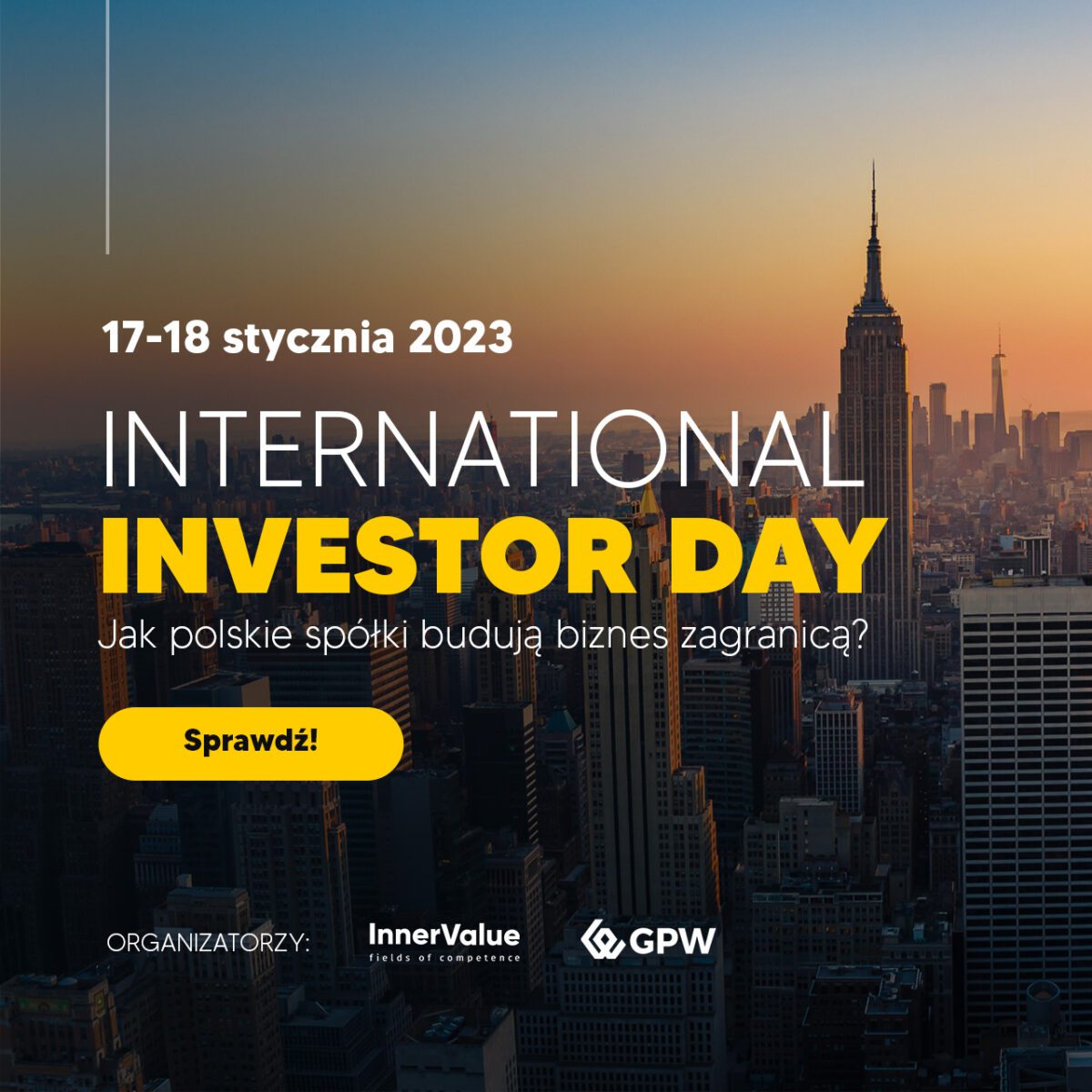 17 i 18 stycznia odbędzie się wydarzenie International Investor Day, dedykowane inwestorom indywidualnym, instytucjonalnym oraz środowiskom przedsiębiorców. Podczas konferencji organizowanej przez GPW oraz InnerValue przedstawiciele polskich spółek zaprezentują metody wzrostu działalności na rynkach zagranicznych, a inwestorzy private equity przybliżą specyfikę inwestowania w takie podmioty.
