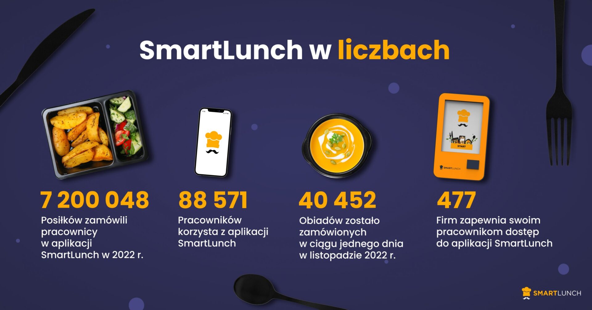 Z rozwiązania SmartLunch korzysta obecnie prawie 90 tys. pracowników zatrudnionych w niemal 500 firmach. Trafiają do nich zestawy obiadowe z 450 restauracji, z którymi firma współpracuje. W pierwszym kwartale 2023 r. start-up planuje przekroczyć liczbę 20 mln wydanych posiłków, a w dalszej części roku konsekwentnie realizować strategię rozwoju opartą na rozszerzeniu sieci gastronomicznych lokali partnerskich oraz na powiększeniu liczby klientów biznesowych.