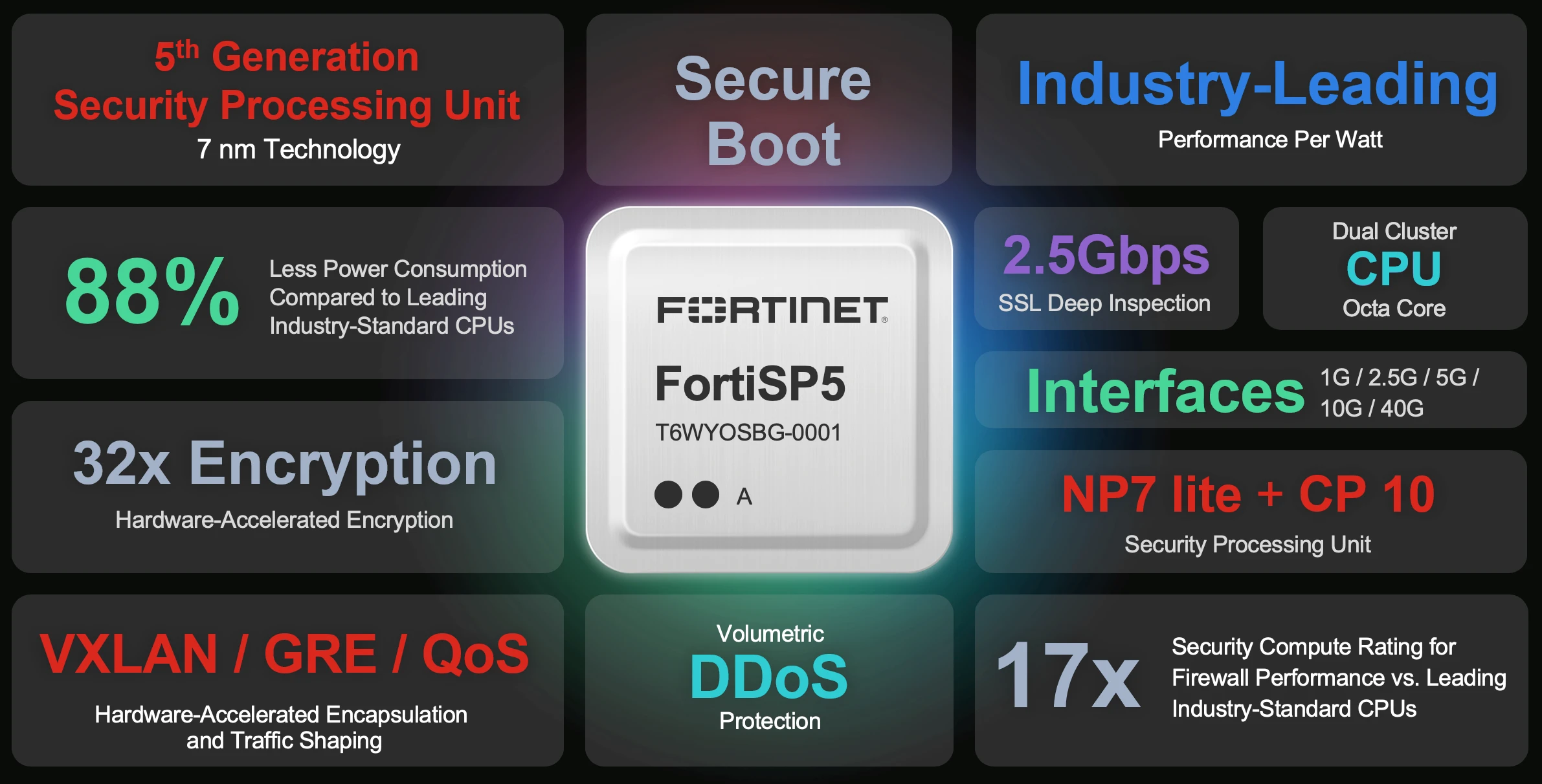 Jako 7-nanometrowy układ piątej generacji, FortiSP5 oferuje więcej możliwości w mniejszej obudowie: