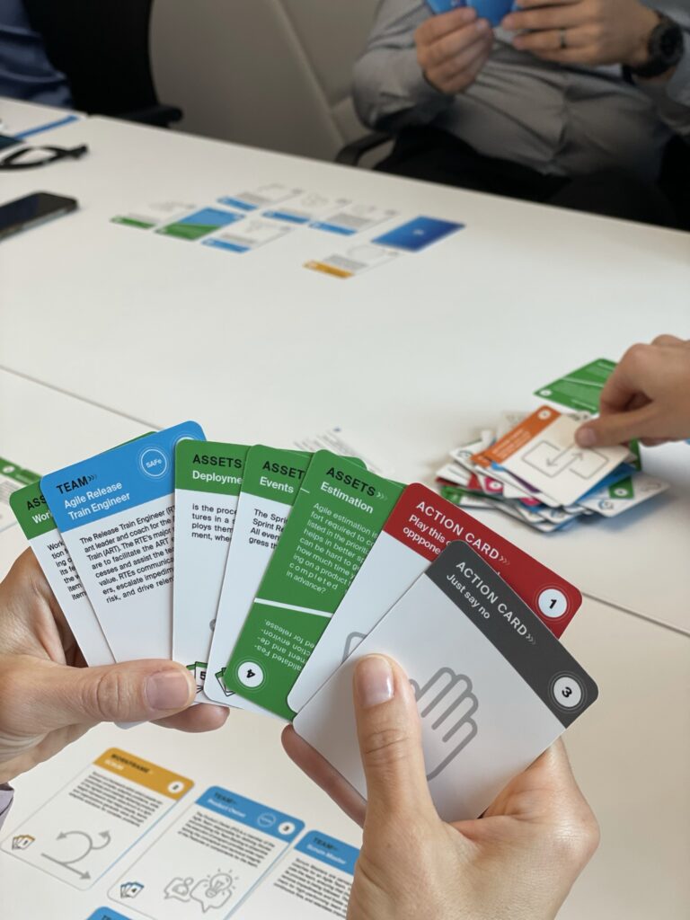 Odzwierciedla to liczbę osób standardowo zaangażowanych w projekt IT oraz czas potrzebny na spotkanie ustalające przebieg procesu. Wygrywa ten gracz, który jako pierwszy zbuduje zwinną organizację poprzez zebranie karty frameworka (Scrum lub XP lub Essential SAFe), a także wszystkich pięciu kart zasobów procesu IT: wdrożenie, zwinne procesy, zaległości, oszacowanie i element backlogu produktu (PBI).
