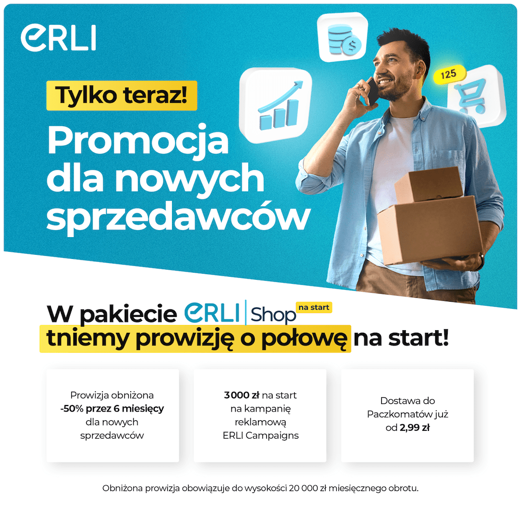 Rozpoczęcie sprzedaży w Internecie to dla wielu firm milowy krok, który bardzo często jest okupiony strachem przed wysokimi kosztami wejścia w e-commerce. Jak się bowiem okazuje koszty prowadzenia internetowego biznesu, są obecnie niemal identyczne do tych, które sprzedawca ponosi w przypadku stacjonarnej formy handlu. Są one związane między innymi z obsługą płatności, usług logistycznych czy też promocji swojego sklepu online oraz coraz wyższymi marżami, jakie pobierają firmy wspierające i zapewniające niezbędne usługi dla działalności w sieci. Dlatego od samego początku model biznesowy ERLI oparty został na wzajemnym wsparciu, dzięki któremu realnie obniżamy koszty funkcjonowania polskiego biznesu w e-commerce, oferując pakiet działań wspierających – płatniczych, logistycznych i promocyjnych. Na kanwie naszych doświadczeń uruchamiamy właśnie program „Na Start” skierowany do sprzedawców, którzy do tej pory nie prowadzili sprzedaży na platformie ERLI.pl. Każdy nowy przedsiębiorca, który rozpocznie sprzedaż swoich produktów na ERLI.pl i do końca kwietnia uruchomi promocję w ramach ERLI Campaigns, będzie mógł skorzystać z obniżonej prowizji aż o 50% do miesięcznego limitu 20 tys. zł obrotu, przez następne 6 miesięcy. – mówi Adam Ciesielczyk, Prezes ERLI.pl.
