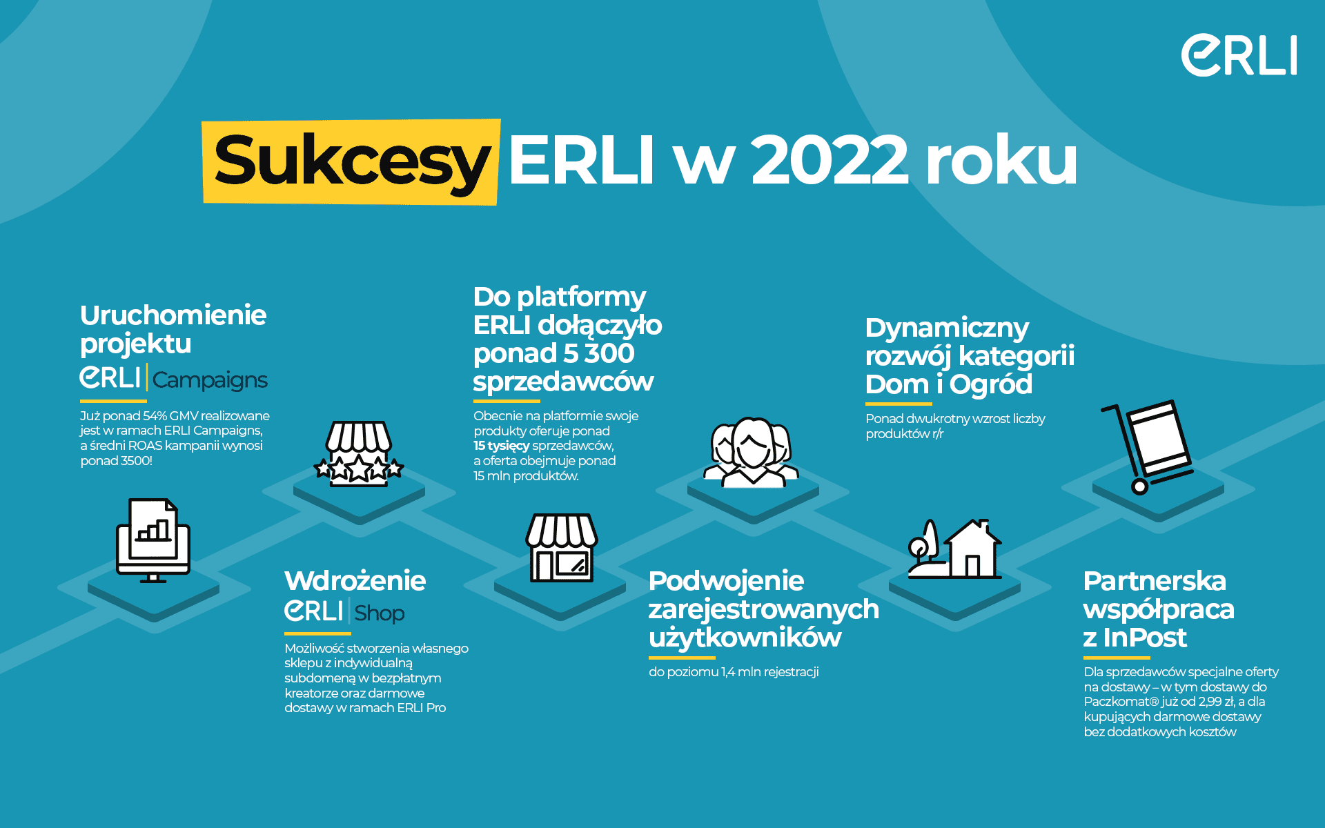 Platforma Erli.pl, najszybciej rozwijający się marketplace w Polsce, podsumowała 2022 rok, który istotnie umocnił jej pozycje na krajowym rynku e-commerce. Osiągnęła ona wynik ponad 470 mln zł GMV oraz przekroczyła 2,7 mln sprzedanych produktów. Dodatkowo firma w porównaniu do 2021 roku podwoiła liczbę zarejestrowanych użytkowników, co przełożyło się na 2,5-krotny wzrost liczby transakcji. W ubiegłym roku marketplace wprowadził rewolucyjny program wsparcia sprzedawców – ERLI Campaigns, co przyczyniło się między innymi do zwiększenia do ponad 15 tysięcy liczby sprzedawców zarejestrowanych na platformie.