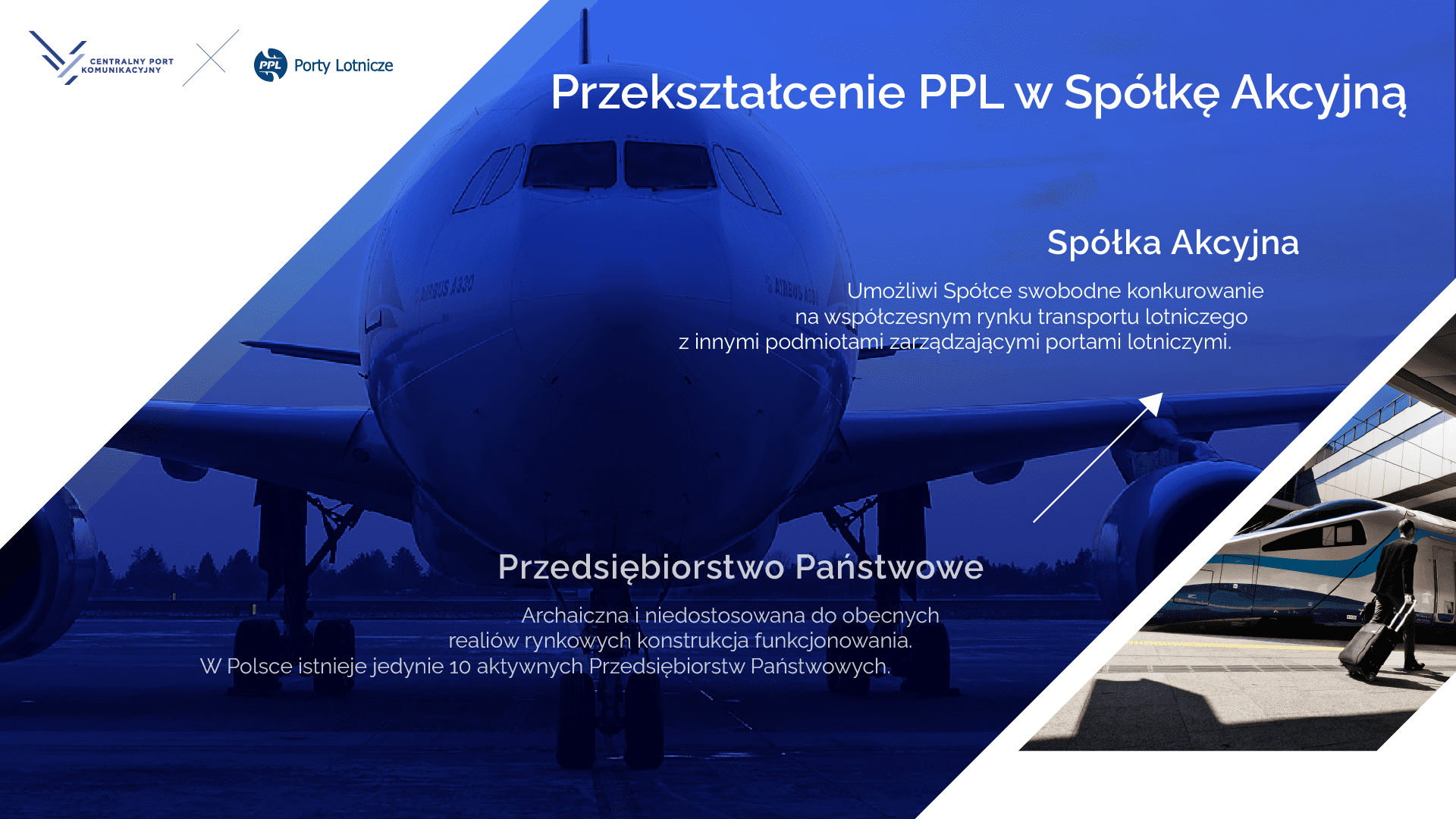 Dzięki przekształceniu przedsiębiorstwa w spółkę akcyjną możliwe będzie jego funkcjonowanie na rynku usług lotniczych jako spółki prawa handlowego. W takiej właśnie formie działa zdecydowana większość zarządzających portami lotniczymi w Europie m.in. Svedavia, czy Aeroport de Paris”- mówi Anna Dermont, Rzecznik PPL. Efektem przekształcenia będzie także odejście od zanikającej już formy prawnej, jaką jest przedsiębiorstwo państwowe. Do tej pory w Polsce istniało tylko 10 aktywnych podmiotów tego typu, a PPL było największym z nich.