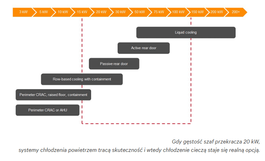 Technologia chłodzenia centrum danych, a gęstość szaf rack