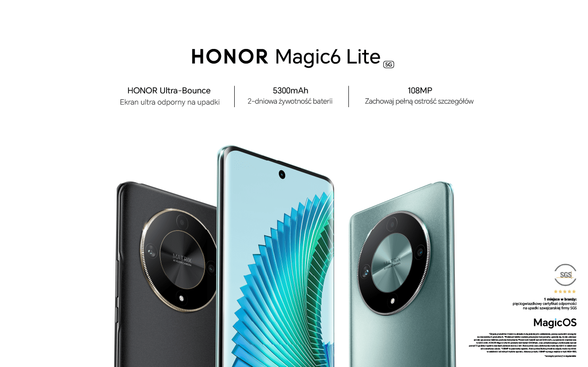 Globalna marka technologiczna HONOR wprowadziła do sprzedaży w Polsce nowy model smartfona z linii Magic – HONOR Magic6 Lite. Model ten łączy w sobie niezwykłą wytrzymałość ekranu, ulepszony czas pracy baterii oraz potrójny system aparatów z głównym obiektywem 108MP. Urządzenie jest dostępne do kupienia w trzech różnych wariantach kolorystycznych w cenie 1 899 zł.
