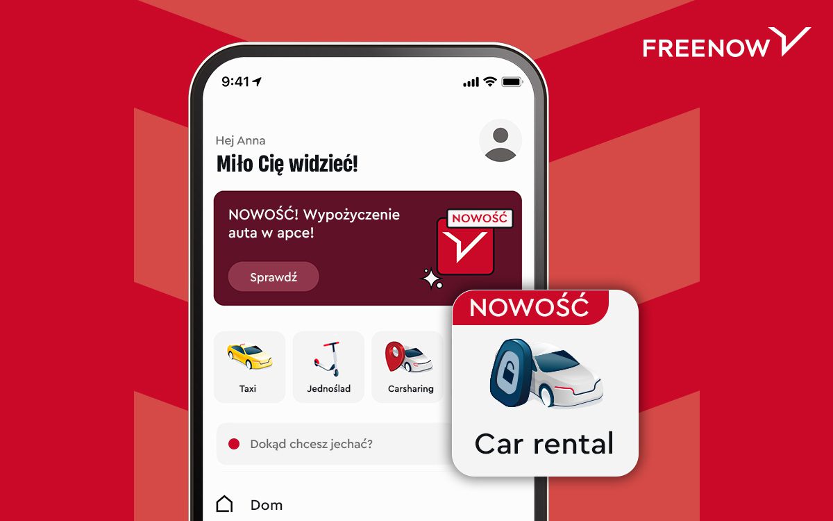 FREENOW, europejska superaplikacja mobilności miejskiej zintegrowała nową usługę – Car Rental, która pozwala na wypożyczanie samochodów oferowanych przez Avis, Hertz i Europcar. Jest ona dostępna dla wszystkich użytkowników FREENOW, w tym z Polski. W ten sposób platforma realizuje swoją strategię poszerzania oferty mobilności miejskiej poprzez integrację usług transportowych od zewnętrznych operatorów.
