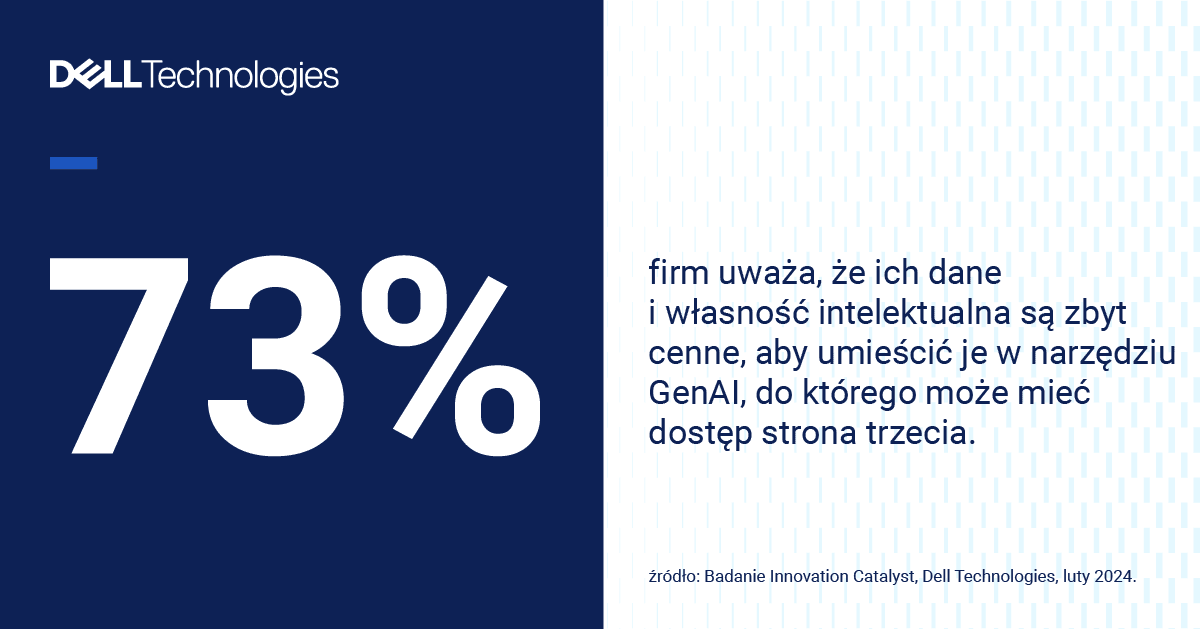 Transformacyjny lub znaczący potencjał GenAI respondenci widzą w obszarach poprawy stanu bezpieczeństwa IT (52%), wzrostu produktywności (52%) i wyższej jakości obsługi klienta (51%). Dla grupy z Polski na podium znalazły się: wzrost produktywności (55%), automatyzacja powtarzalnych zadań (55%) oraz poprawa bezpieczeństwa (53%). Wszyscy uczestnicy badania są również świadomi wyzwań do pokonania: 68% obawia się, że GenAI wygeneruje nowe problemy związane z bezpieczeństwem i prywatnością, a 73% zgadza się ze stwierdzeniem, że ich dane i własność intelektualna są zbyt cenne, aby umieścić je w narzędziu GenAI, do którego może mieć dostęp strona trzecia.