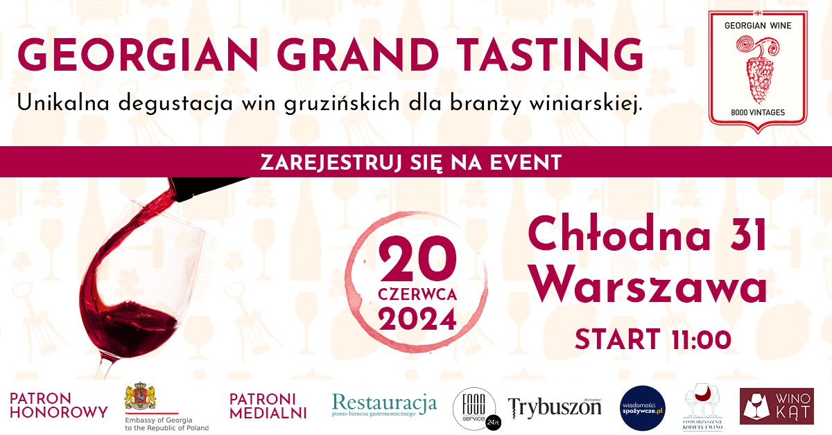 Zapraszamy na pierwszą degustację win gruzińskich w Polsce dla branży winiarskiej. Wydarzenie będzie okazją, by zapoznać się z portfolio kilkudziesięciu gruzińskich winnic, poznać producentów, spróbować wyjątkowych win i wziąć udział w masterclassach.