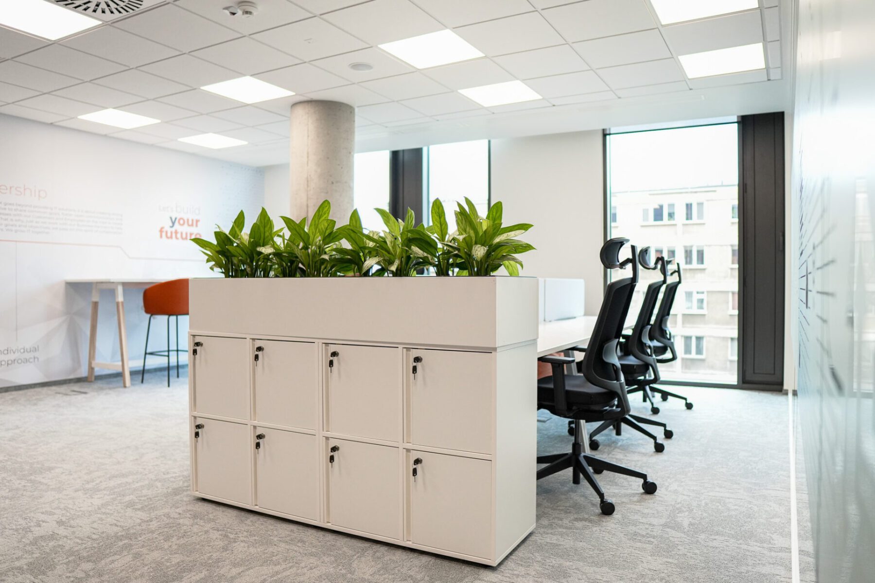Przestrzeń wrocławskiego biura podzieliliśmy na trzy strefy: mniejszą z 9 biurkami dla wewnętrznego zespołu, duży open space z 32 stanowiskami dla konsultantów oraz zamkniętą strefę z 24 biurkami. Dzięki temu możemy lepiej dostosować nasze środowisko pracy do specyficznych potrzeb naszych zespołów i klientów. – mówi Minh Hang Hoang-Trusiak, Senior Marketing Communication Manager w NATEK Poland.