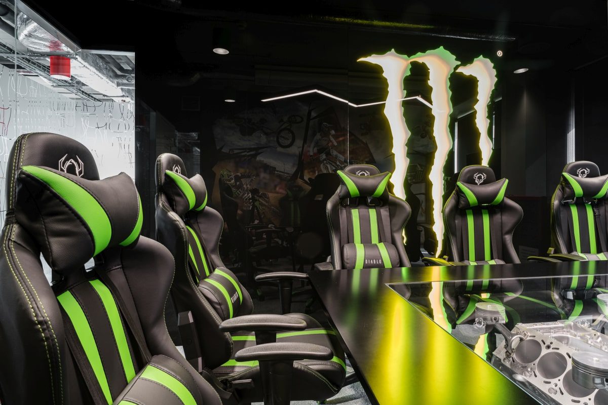 Wystrój salek konferencyjnych nawiązuje wystrojem do danego produktu marki Coca-Cola HBC. Większe sale konferencyjne, które znajdują się na każdym z trzech pięter są nazwane i zaprojektowane w nawiązaniu do flagowych produktów takich jak Cola-Cola, Coca-Cola Zero, Coca-Cola Cherry, Fanta, Sprite, Adez, Monster, Power Rade, Cappy, Kropla Delice, Kropla Beskidu czy Burn. Każda z nich urządzona została zgodnie z archetypem danego napoju. Stąd w sali „Monster” architekci postawili na dynamiczny wystrój. Stół zespawano z dwóch silników, do tego fotele dla graczy, charakterystyczne logo oraz grafiki na ścianach podkreślają jej odważny charakter. W pomieszczeniu „Horeca” na ścianach znajdują się historyczne wycinki z gazet czy grafiki na blachach. Salka „Adez”, dzięki zamocowaniu stołu do sufitu tworzy efekt lewitowania. W sali „Kropla Delice” wykonano stół z naturalnego drewna i żywicy, zaś salka „Kraków” ma stół z charakterystyczną grafiką „Jesteśmy Stąd”. Detale to bowiem jeden z mocniejszych punktów tego projektu.