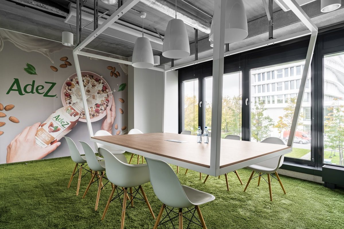 Pracownicy do swojej dyspozycji mają także wiele stref mniej formalnych, które czynią przestrzeń biurową bardziej przyjazną. Huśtawki czy żywa zieleń sprzyjają relaksowi i pozwalają zaczerpnąć głębszego oddechu w trakcie pracy. Nie brakuje również przestrzeni do szybkich i luźnych spotkań sprzyjających integracji zespołów. Należą do nich małe i duże salki konferencyjne, kuchnie wraz z jadalnią oraz taras, który w sezonie letnim staje się wartością dodaną biura. Uwagę przyciągają budki w formie domków i kontenerów, gdzie można się wyciszyć w samotności.