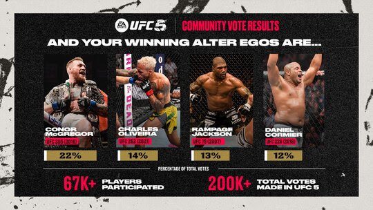 Electronic Arts: Poinformował o nowej aktualizacji EA Sports UFC 5, która wprowadza szereg nowych zawodników z aktualnej puli zawodników UFC, jak również Alter Ego. Ponadto w jednej z przyszłych aktualizacji do gry trafią prawdziwe sławy – w tym Alter Ego czołowego zawodnika Connora McGregora z UFC 205.